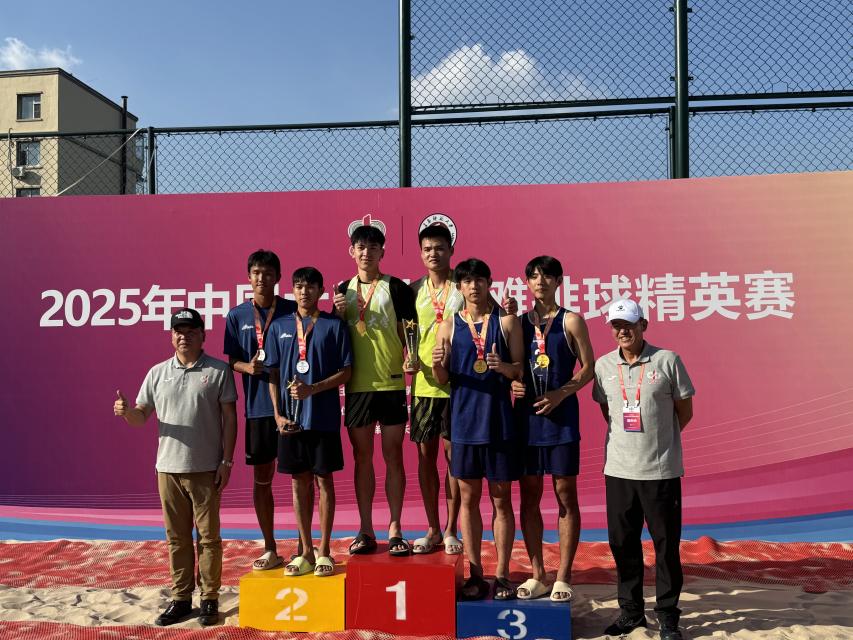 近日,由中国学生体育联合会主办的2025年中国大学生沙滩排球精英赛在长春师范大学举行。我校沙滩排球队在教练万宁和张寒艳老师的带领下,经过7天激烈角逐,取得了沙排精英赛的历史最好成绩:由丁志峰、张世杰组成的男子队斩获男子组第三名,并荣获体育道德风尚奖。