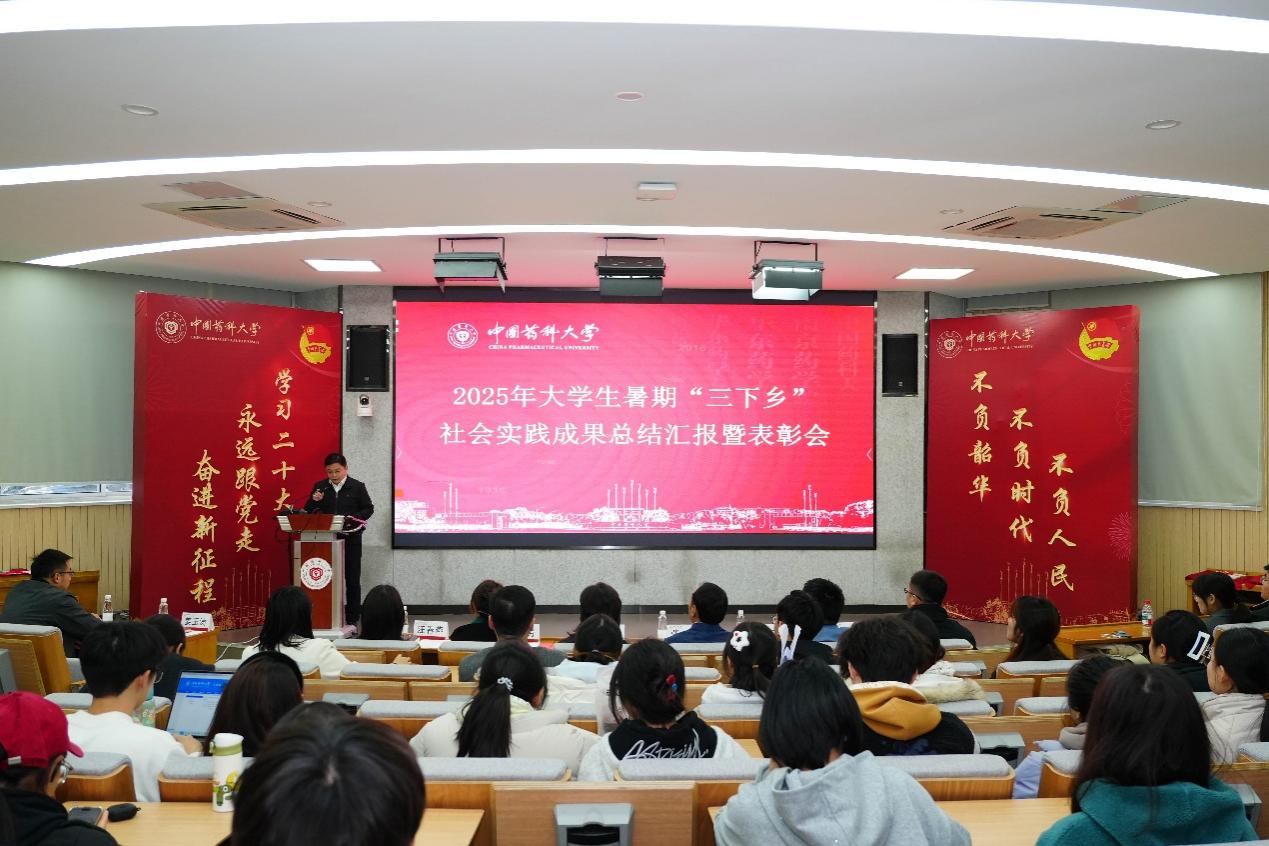 为深入学习贯彻学校第十一次党代会精神,扎实推进实践育人工作,引导广大学子在社会课堂中受教育、长才干、作贡献,12月10日下午,2025年大学生暑期“三下乡”社会实践成果总结汇报暨表彰会在江宁校区E105教室举行。校党委副书记朱红、南京正大天晴制药有限公司副总裁张翎出席会议。学工处、校团委负责同志,各学院分管领导、团委书记、社会实践师生代表及2025级新生团支书参加活动。