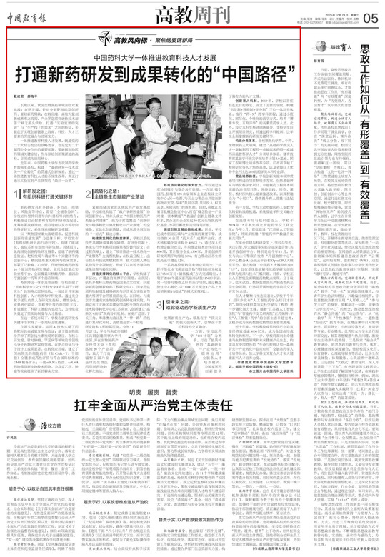 据悉,《中国教育报》是由中华人民共和国教育部主管、中国教育报刊社主办的全国性教育日报,是国内唯一国家级教育行业权威媒体。该文章的刊发,是对我校办学方向、改革路径与发展成果的充分肯定,也为推动高校深度融入国家创新体系、赋能医药产业高质量发展提供了“中国药大方案”与路径参考。