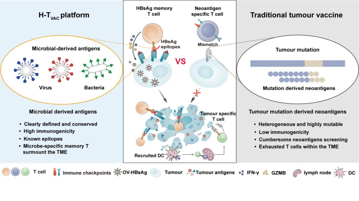 相较于传统基于测序筛选的个体化新抗原疫苗(仍存在免疫原性低、制备周期长、成本高等问题),H-TVAC体系具有异源蛋白免疫原性强、抗原表位明确、可依托病毒特异性记忆T细胞突破TIME等显著优势(图1)。更加重要的是,该策略无需复杂的抗原预测和筛选过程,可显著降低研发与治疗成本,为通用型肿瘤疫苗的开发提供了新范式。目前,课题组正积极推动H-TVAC体系的临床转化,诚邀对肿瘤疫苗与免疫治疗充满热情的硕博研究生及合作企业加入,共同探索肿瘤免疫治疗新方向。