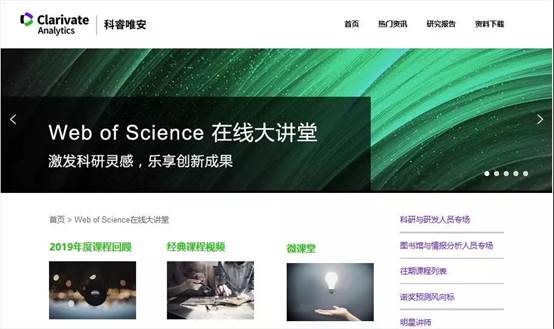 进入Web of Science在线大讲堂,请访问网址:https://clarivate.com.cn/e-clarivate/wos.htm