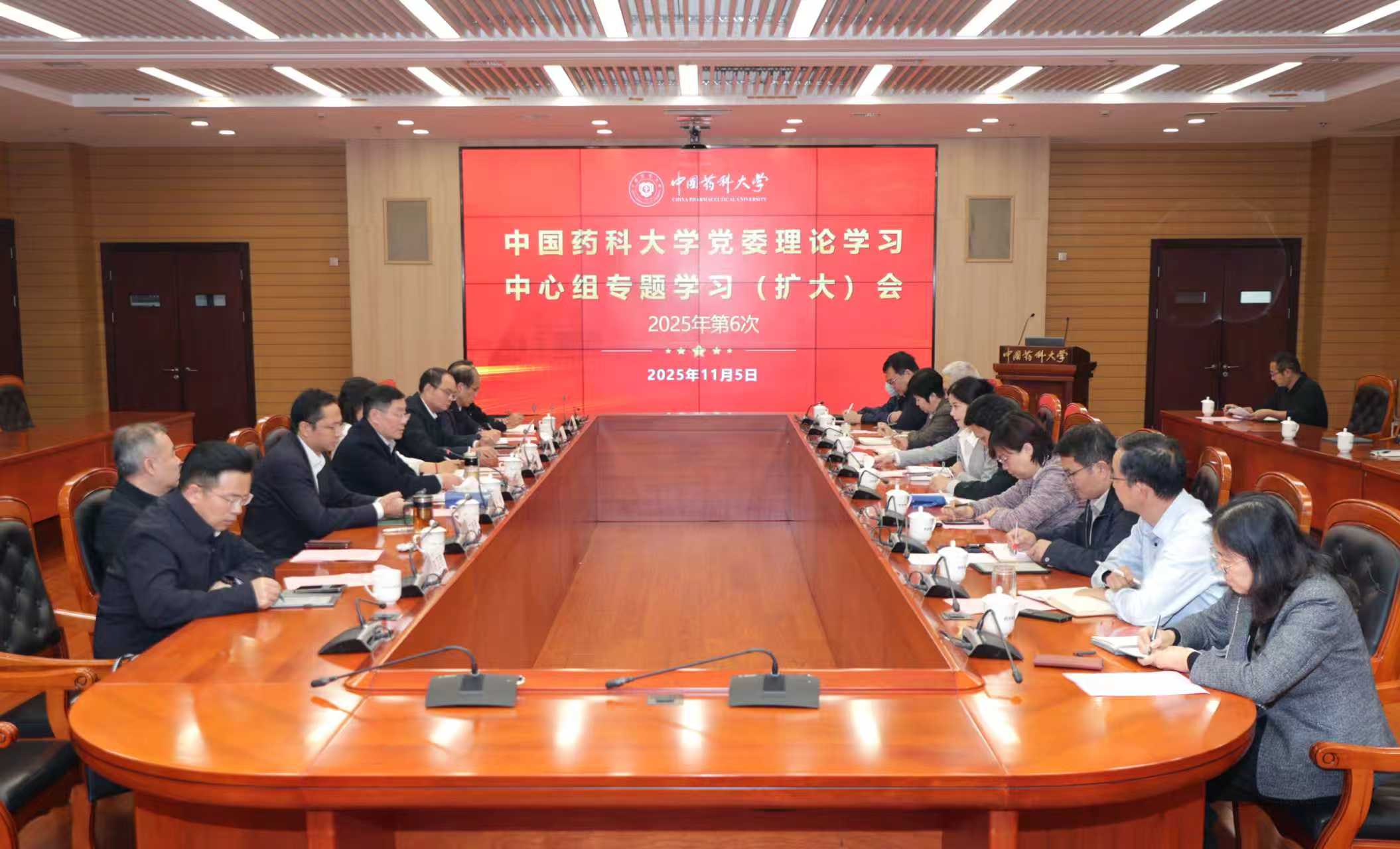 11月5日,校党委理论学习中心组举行2025年第6次学习(扩大)会,专题传达学习党的二十届四中全会精神,对制定学校“十五五”发展规划进行研讨。校领导、校党委常委、校党委理论学习中心组成员、各二级党组织书记等参加学习会。会议由校党委书记戴建君主持。