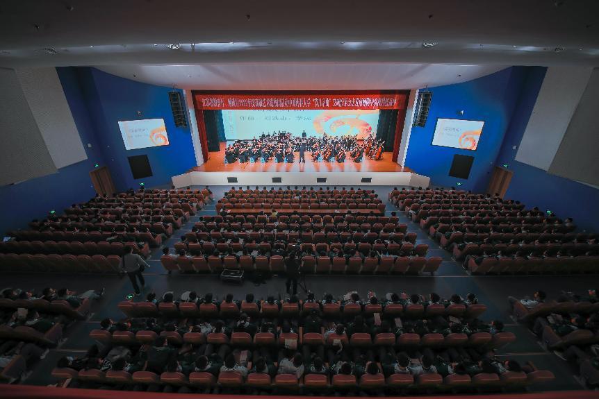 11月16日下午和11月17日晚上,由江苏省教育厅、江苏省财政厅主办,中国药科大学承办的2022年度江苏省高雅艺术进校园活动拓展项目,中国药科大学交响乐团《节日序曲——中国经典管弦乐作品音乐会》分别在南京师范大学附属中学秦淮科技高中和江宁高级中学成功举办。南师附中秦淮科技高中校长徐国民、副校长薛力、学生发展中心主任吴婕,江宁高级中学校长戎仁堂、副校长陈立军、高一年级主任孟琪,我校招生就业处负责人、南京地区招生宣传组外国语学院负责人和两校全体高一年级师生,共同欣赏了音乐会。