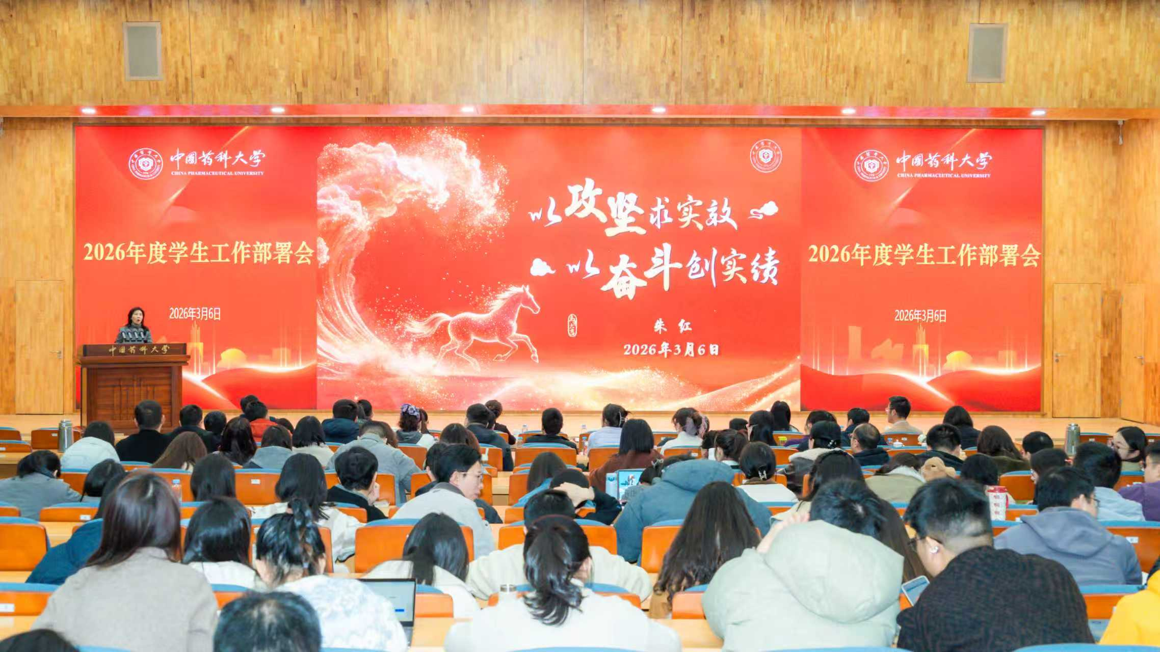 3月6日上午,我校在江宁校区会议中心二楼报告厅召开2026年度学生工作部署会。校党委副书记朱红,校党委副书记、纪委书记陈文恩出席会议。学生工作部、招生就业处、校团委全体人员,各学院分管学生工作副书记、全体专兼职辅导员参加会议。