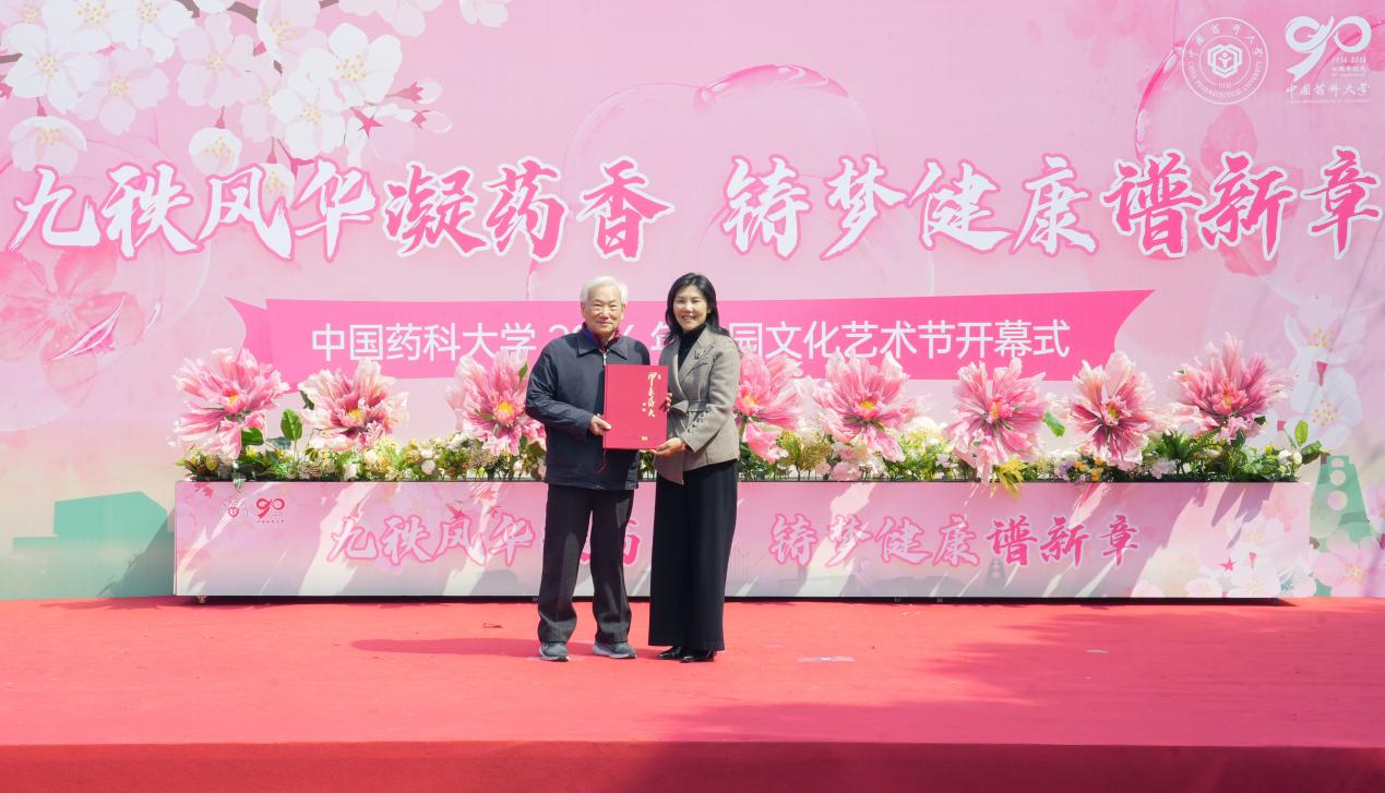 3月21日,我校在江宁校区举办2026年“九秩风华凝药香,铸梦健康谱新章”校园文化艺术节开幕式。1961级校友、中国药科大学制药厂前高级工程师尹来生,1987级校友、南京圣和药业股份有限公司董事长、总经理王勇,2001级校友、南京海鲸药业股份有限公司董事长张现涛,2010级校友、上善泽惠医药科技有限公司创始人潘梦月应邀出席开幕式。校党委书记戴建君,校党委副书记朱红,相关职能部门负责人、师生代表、校友代表、离退休同志代表等参加活动。