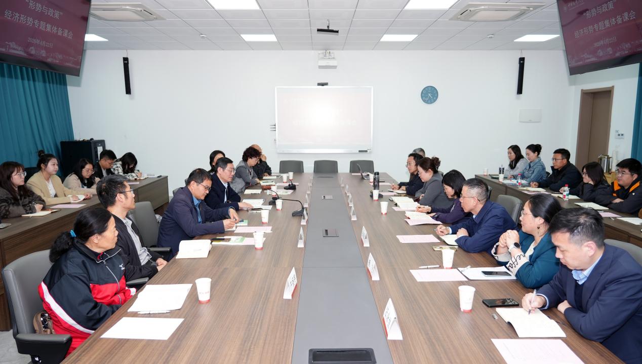 4月22日下午,马克思主义学院召开2026年春季学期“形势与政策”课经济形势专题集体备课会。校党委书记戴建君、校党委副书记朱红到会指导。马克思主义学院领导班子,党办、教务处、学工处等相关职能部门负责人,校教学督导以及思政课教师、辅导员代表参加备课会。